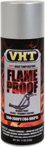 VHT Flame Proof Coating SP104 Flat Grey is the color coat for the three part multi high performance coating system. VHT Flame Proof Coating will extend the life of any surface exposed to extremely high temperatures. This unique coating is a matte finish, silicone ceramic base widely used by the automotive industry on exhaust systems, and the aerospace industry for jet engines, re-entry vehicles and other high temperature applications. VHT Flameproof Coating will withstand temperatures up to 2000 degrees Fahrenheit (1093 degrees Celsius) and is ideal for use on headers, exhaust systems, or wherever an extreme temperature coating is needed. VHT provides a multi high performance coating system for the ultimate protection and quality. The system of primer, paint and clear coat finish is applied with a curing process to insure top performance. VHT Flameproof coating only attains its unique properties after correct curing. Curing can be done on the vehicle or off the vehicle by using the following steps. ON the vehicle, paint must be completely dry, run engine at idle for 10 minutes, cool for 20 minutes, run at idle for 20 minutes, cool for 20 minutes, run at normal operating conditions for 30 minutes. OFF the vehicle, paint must be completely dry before curing, heat to 250 degrees Fahrenheit or 30 minutes, cool for 30 minutes, heat to 400 degrees Fahrenheit or 30 minutes, cool for 30 minutes, heat to 650 degrees Fahrenheit or 30 minutes. (CAUTION: Do not exceed the temperature of the least heat tolerant component or the base metal.) Complete application and curing instructions are also printed on every can.